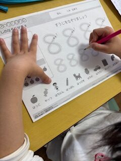 学習面では、言葉に親しみ、言葉にふれる学習を行っていますが、疲れの出る時期ですので無理はせず、お子さんの気持ちや特性に寄り添いながら、数を一緒に数えたり、絵を見て文字を探して囲んだり、私も一緒に楽しみながら学習支援を行っています。また、最近は「コグトレ」という教材を活用し、認知機能の発達支援も行っています。