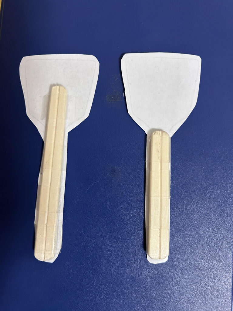 コテの裏には短く切った割りばしを貼り付けています。長ければ簡単に、短ければ難しくなります☺